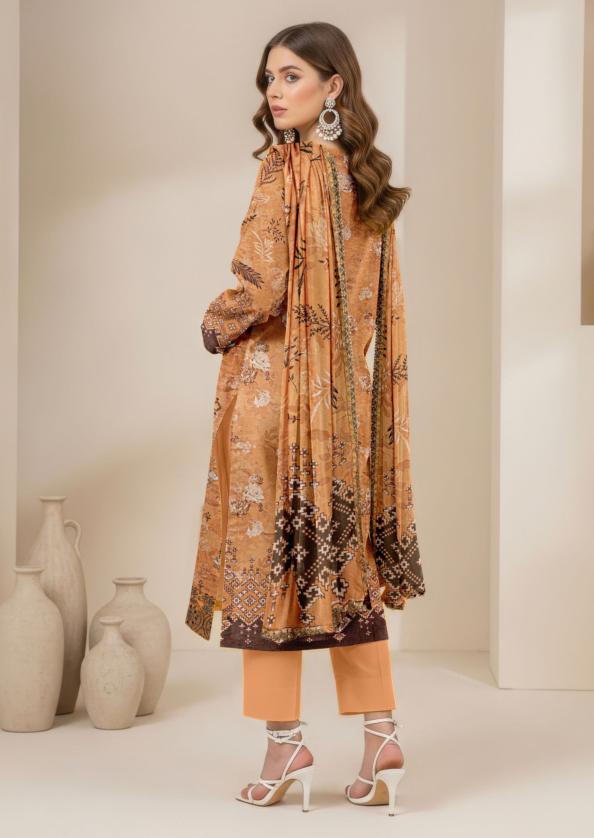 Note: Extra tassels, laces and Boxes for shoot purpose wouldn't be included in Unstitched Dresses, They are only for Model Shoot Purpose.