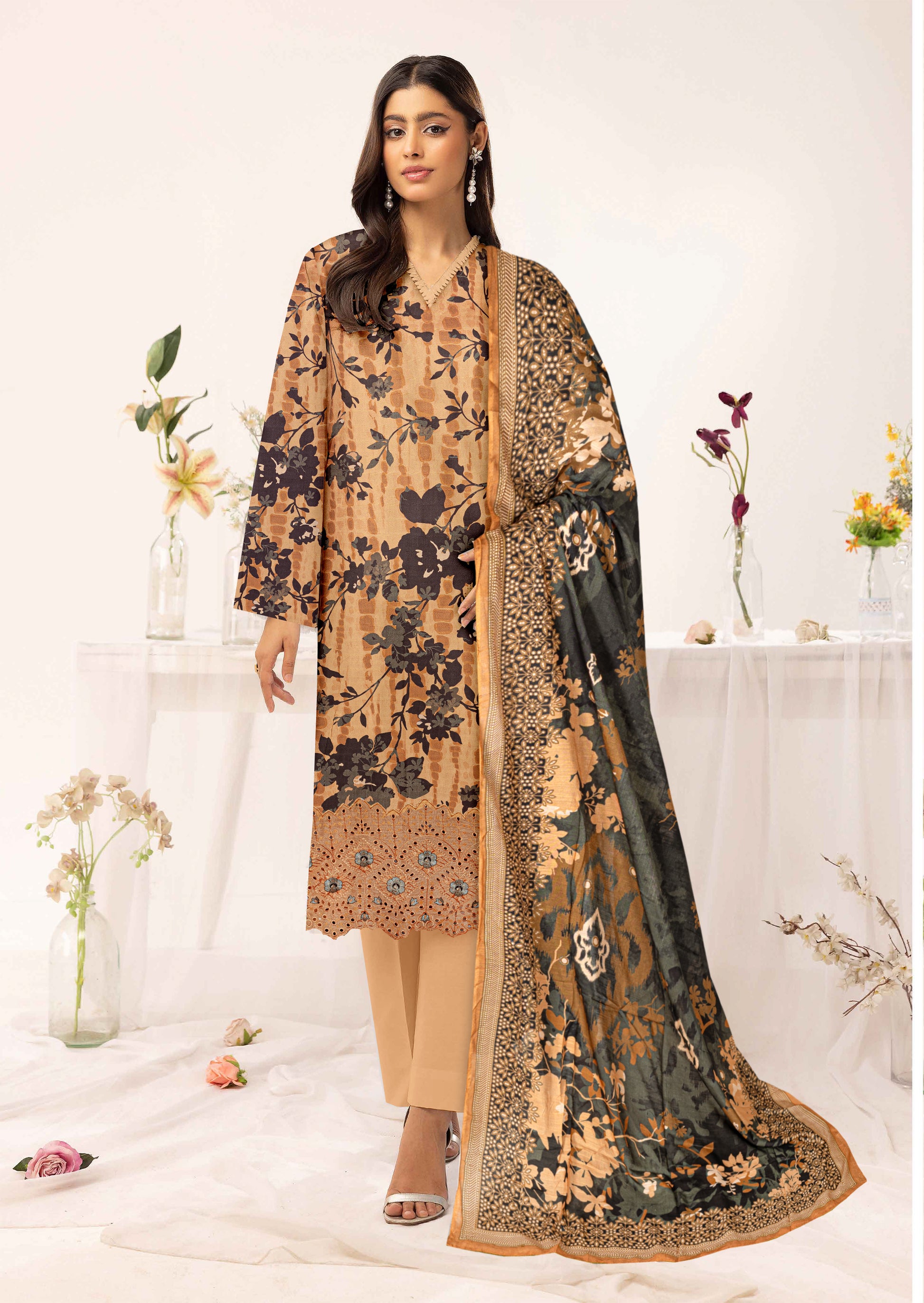 Gulmeena-Exclusive 3 Piece Unstitched Embroidered Winter Dora Suit
