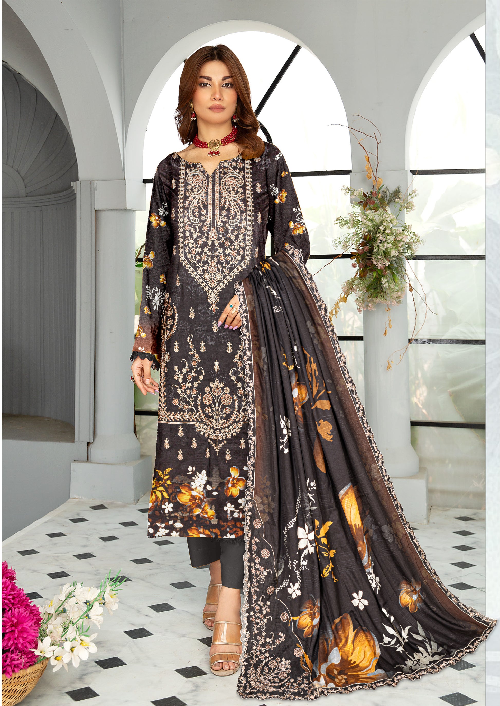 - Dupatta: 4 - Sided Embroidered luxury Malmal